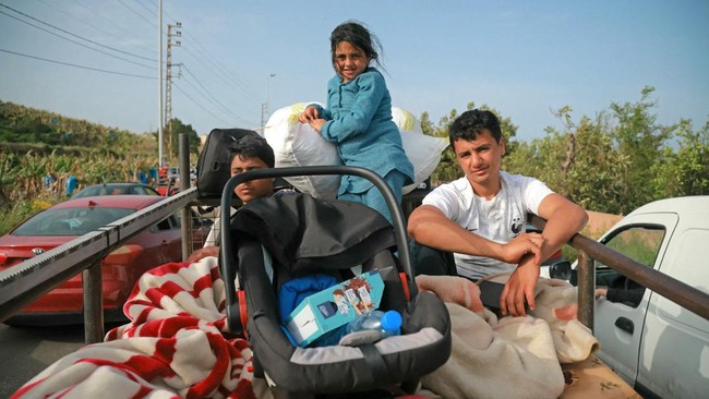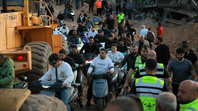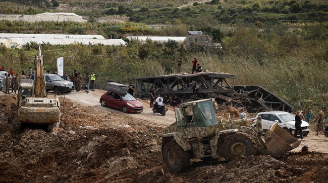 Jakarta, CNN Indonesia -- Sejumlah kendaraan melintasi jalur darurat di atas Sungai Litani, Qasmiyeh, Lebanon selatan, Jumat (17/4), usai gencatan senjata Israel-Hezbollah berlaku. Add as a preferred