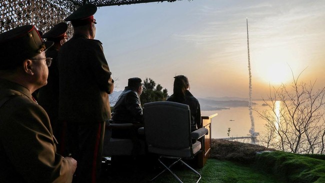 Jakarta, CNN Indonesia -- Pemimpin Korea Utara Kim Jong-un bersama anaknnya Kim Ju Ae memantau langsung uji coba peluncuran beberapa rudal balistik pada Minggu (19/4) pagi. Add as a preferred