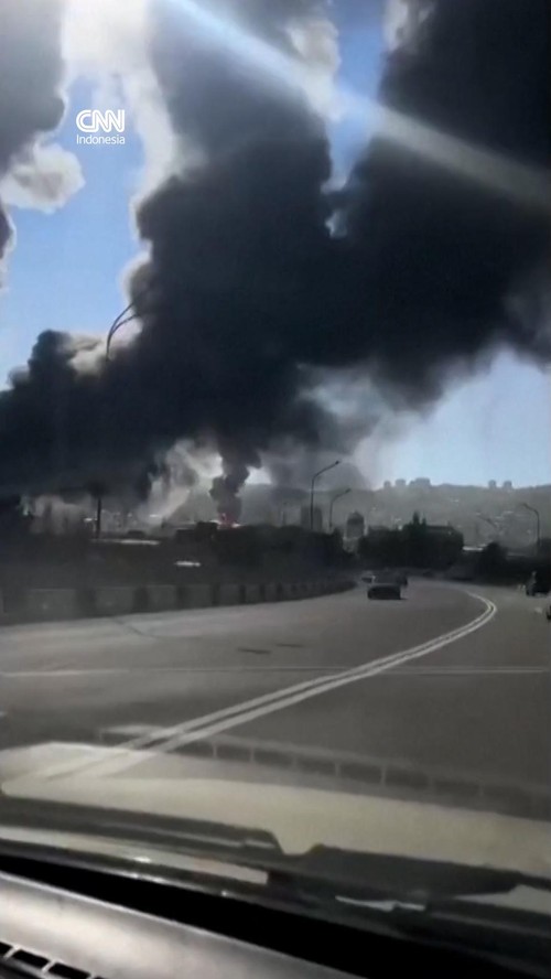 Video rekaman warga menunjukkan asap hitam membumbung tinggi dari kawasan kilang minyak usai serangan.