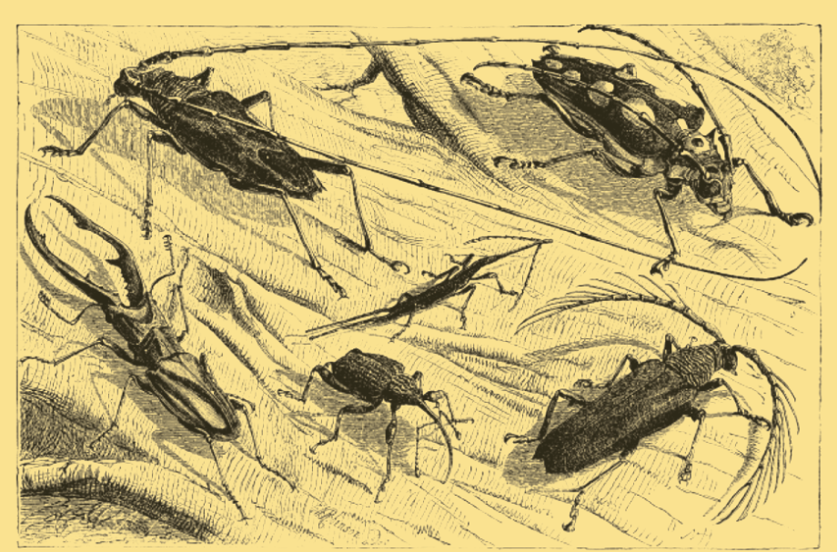 Di sana, ia mengumpulkan lebih dari dua ribu jenis kumbang Borneo. [Ilustrasi: E. W. Robinson | The Malay Archipelago, Chapter 4]