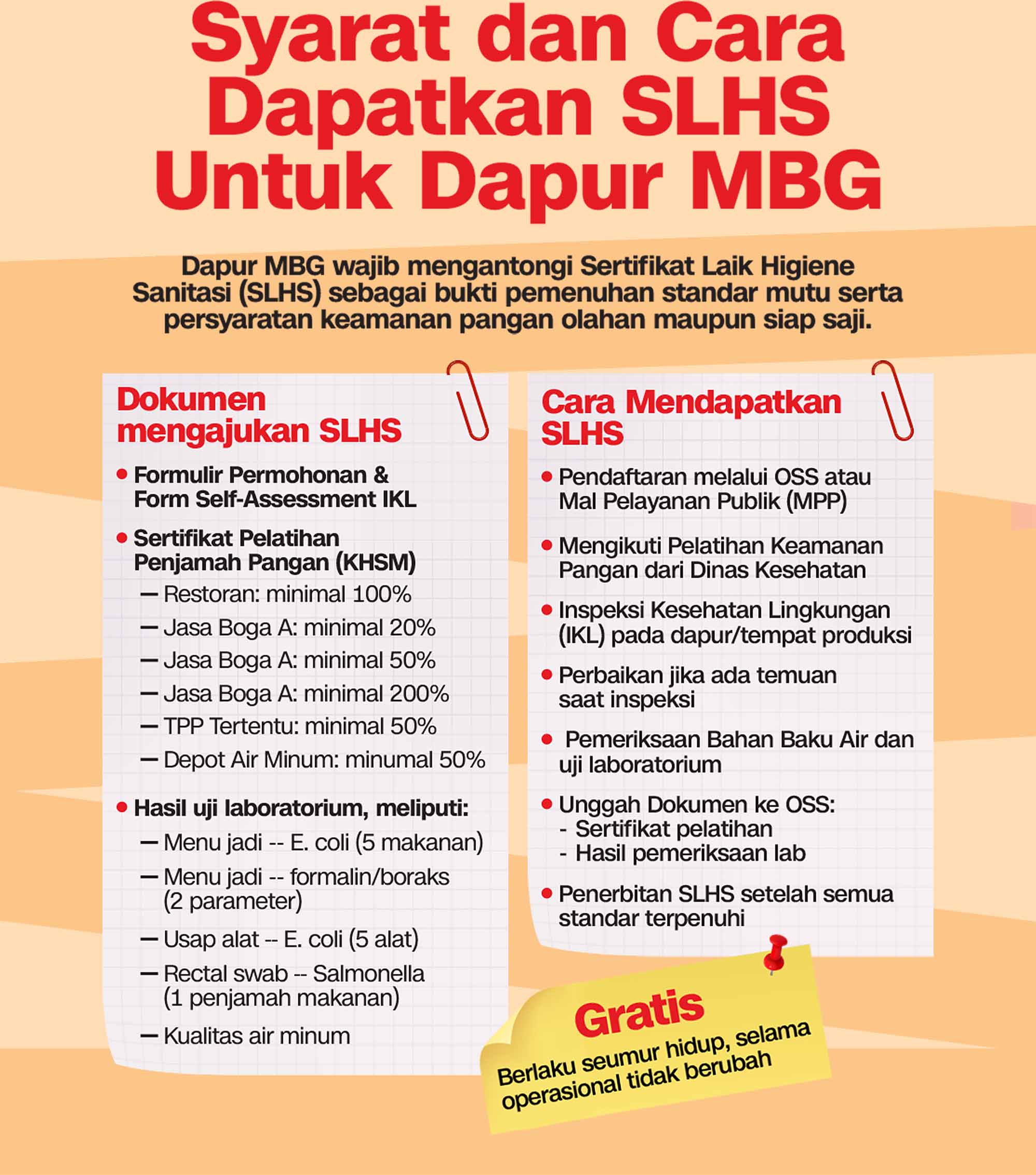 Proses mendapatkan SLHS diakui sangat susah dan memakan waktu berminggu-minggu, melibatkan inspeksi ketat dari Dinas Kesehatan dan puskesmas setempat, mencakup kelayakan dapur, tata letak, bahkan swab test pada air, alat, bahan baku, hingga kesehatan seluruh relawan.