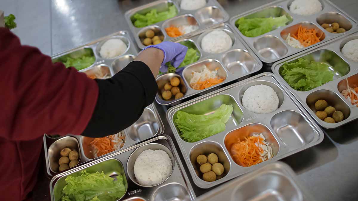 Antusiasme juga terlihat di SDN Kali Rungkut 1, Surabaya, Jawa Timur. Siswa-siswa estafet membawa ompreng berisi menu MBG dari mobil box. Usai cuci tangan dan berdoa, mereka menyantap bersama menu ayam kecap, capcay, dan tempe.
