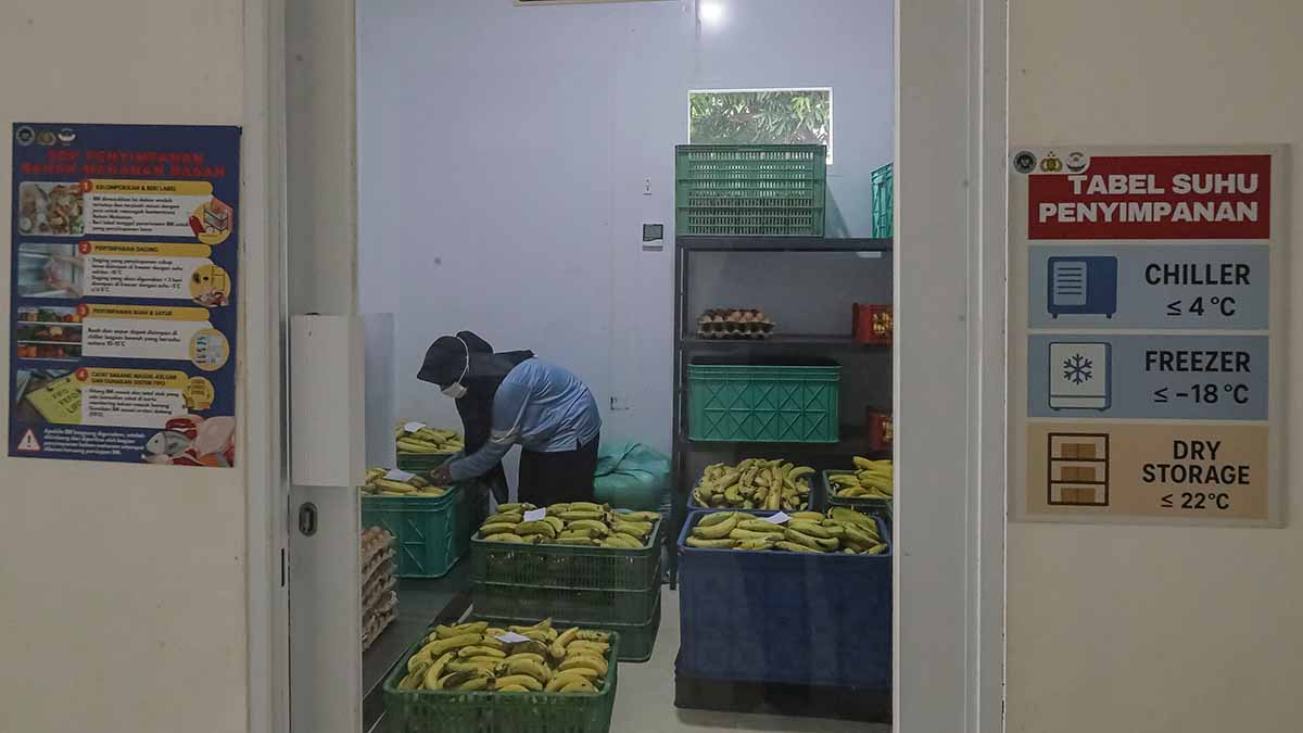Untuk bahan makanan basah yang rentan, SPPG Polri 2 Cipinang dilengkapi dengan ruang chiller dan freezer berstandar. Ruang penyimpanan buah dan sayur, misalnya, diatur dengan suhu yang presisi, seperti tertera pada tabel suhu penyimpanan, bahan makanan yang harus disimpan di chiller wajib di suhu maksimal 4 derajat Celcius.
