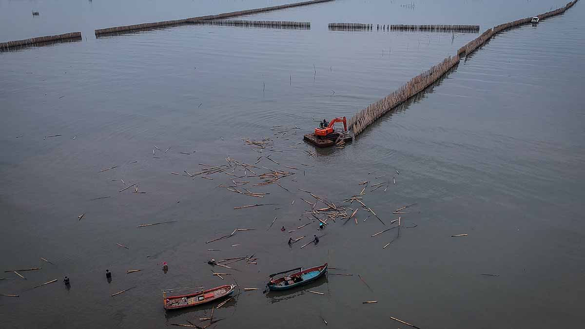 Pagar laut membentang sepanjang 30,16 km, mencaplok wilayah pesisir 16 desa di 6 kecamatan di wilayah Tangerang.