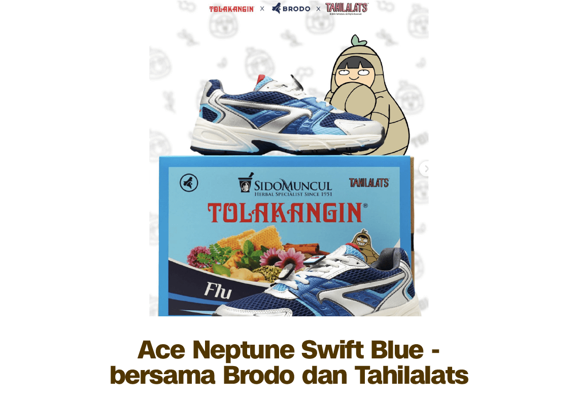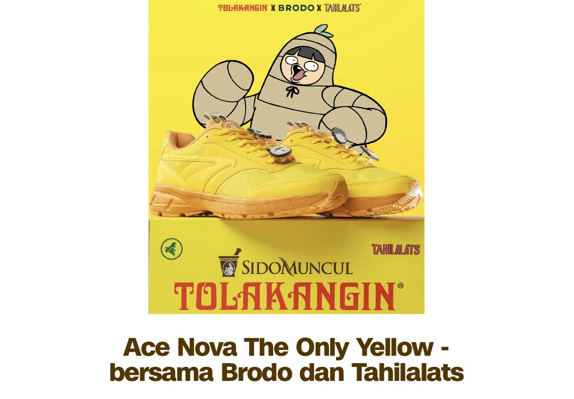 Tahun 2025 menjadi tahun yang spesial bagi Tolak Angin. Sejumlah kegiatan kolaborasi dilakukan Tolak Angin, salah satunya adalah campaign 'Ace Nova The Only Yellow' dan 'Ace Neptune Swift Blue. Ini' merupakan 'kolaborasi pintar' bersama Brodo dan Tahilalats. Lewat campaign tersebut Tolak Angin membuat produk sepatu yang menggabungkan kualitas, kearifan lokal dan ekspresi inovasi.
