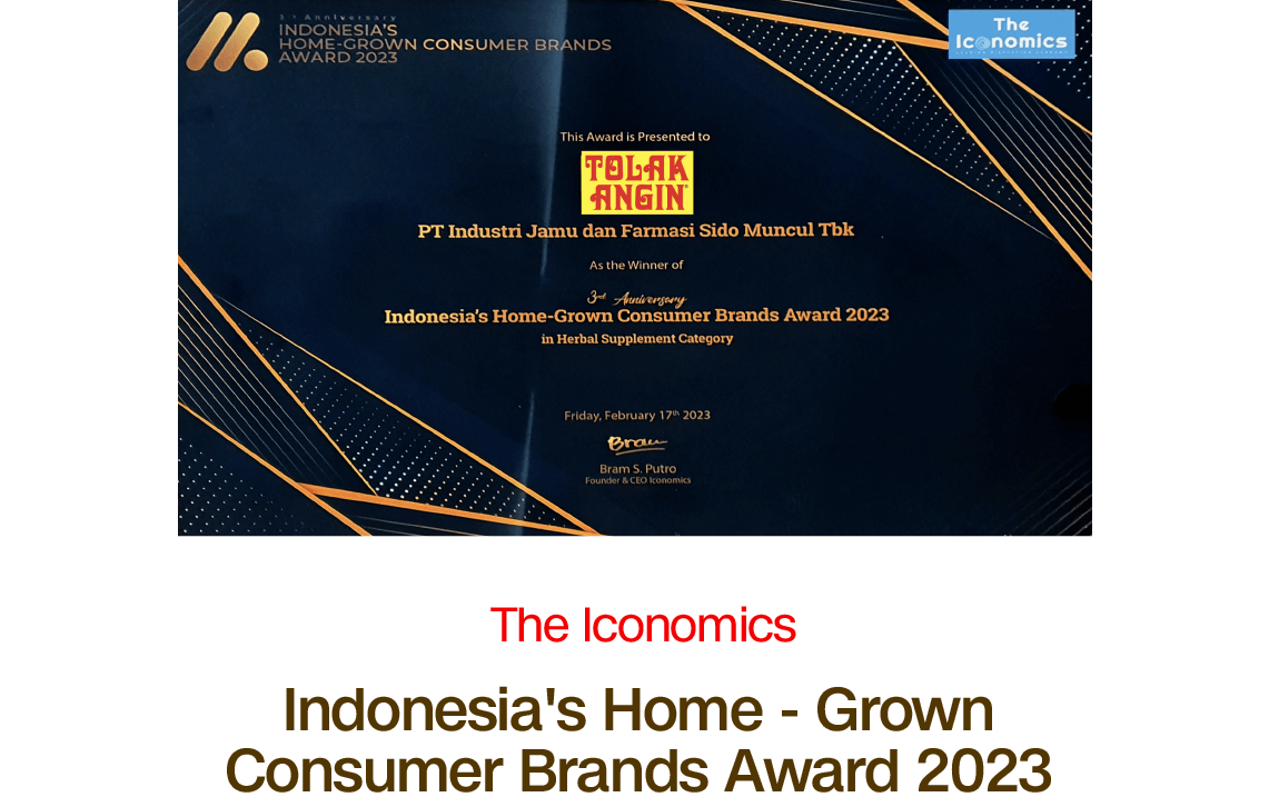 Kerja keras Sido Muncul sepanjang 2025 pun membuat mereka menyabet sederet penghargaan. Tolak Angin meraih penghargaan Indonesia Original Brand 2025 untuk kategori Herbal Supplement yang diberikan SWA dan Business Digest. Tolak Angin mendapat predikat 'Very Good'.