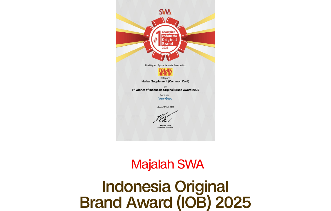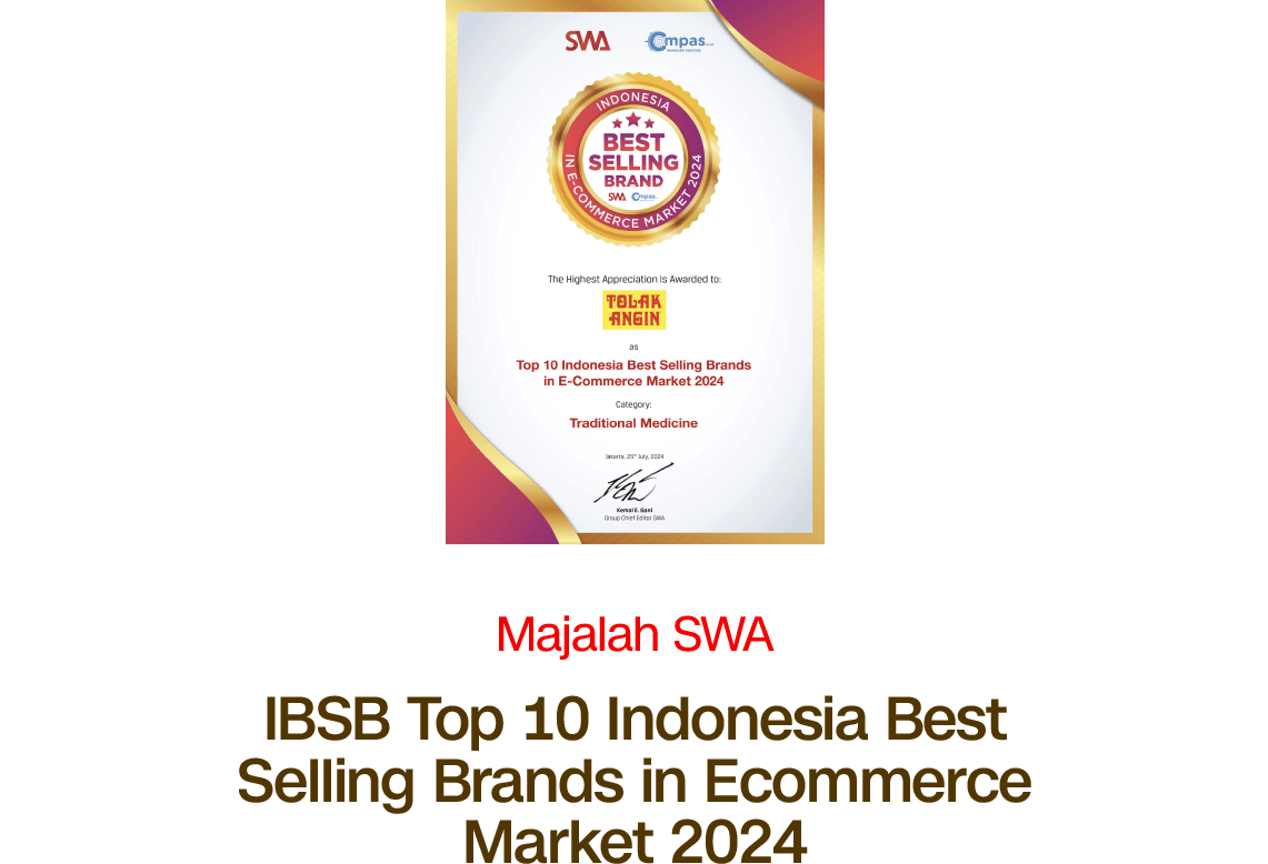 Berbagai capaian itu menegaskan posisi Tolak Angin sebagai produk herbal tepercaya dan setia mendukung kesehatan masyarakat Indonesia dari waktu ke waktu.
