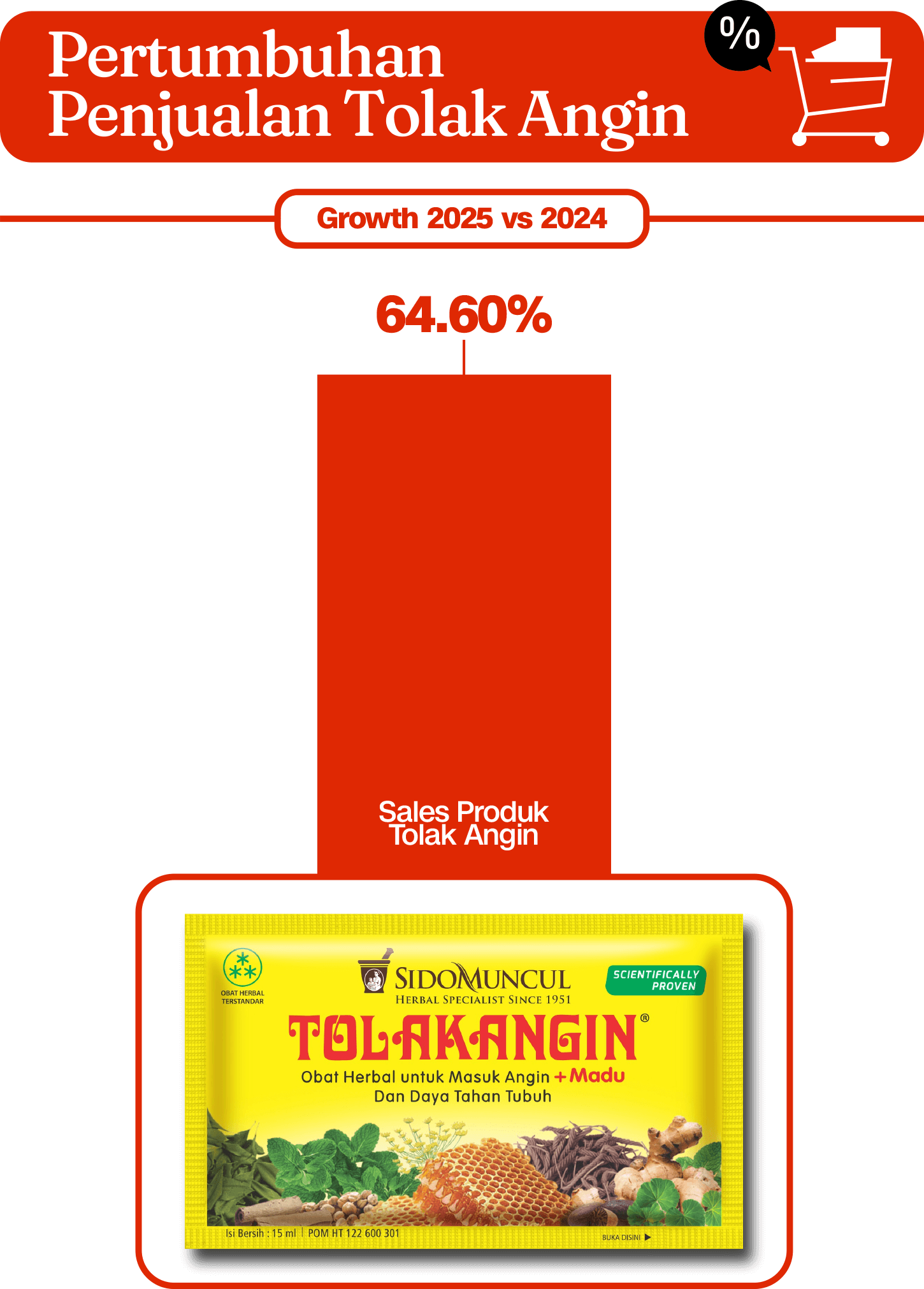Terbukti, Tolak Angin menunjukkan pertumbuhan penjualan yang signifikan di platform online. Dalam rentang tahun 2020 hingga 2025, penjualannya tumbuh hingga 99 persen. Angka tersebut mencerminkan begitu tinggi minat dan kepercayaan konsumen terhadap produk Tolak Angin.