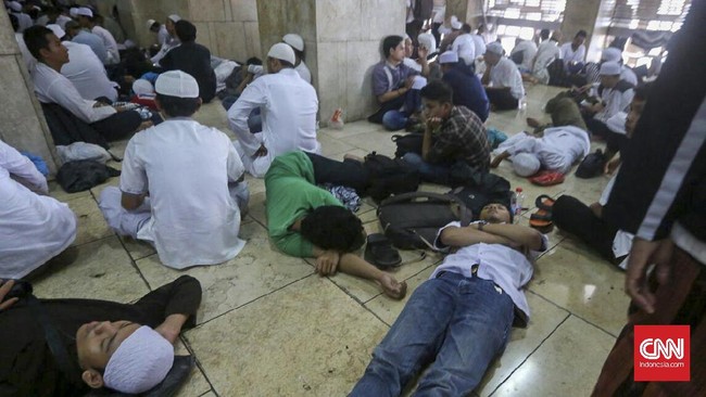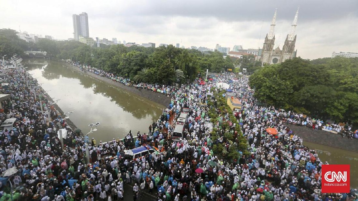 Jakarta, CNN Indonesia -- Hujan yang mengguyur Jakarta sejak dini hari tak menyurutkan antusias ribuan peserta Aksi 112 untuk berkumpul dan menjadi lautan massa di jantung ibu kota.