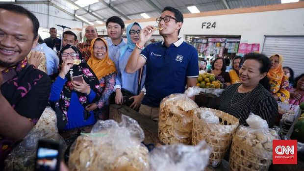 Ilustrasi Sandiaga Uno ke pasar. (CNN Indonesia/Tiara Sutari). |