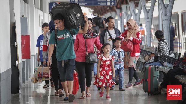 Calon pemudik di Stasiun Senen. ( CNN Indonesia/Safir Makki) |