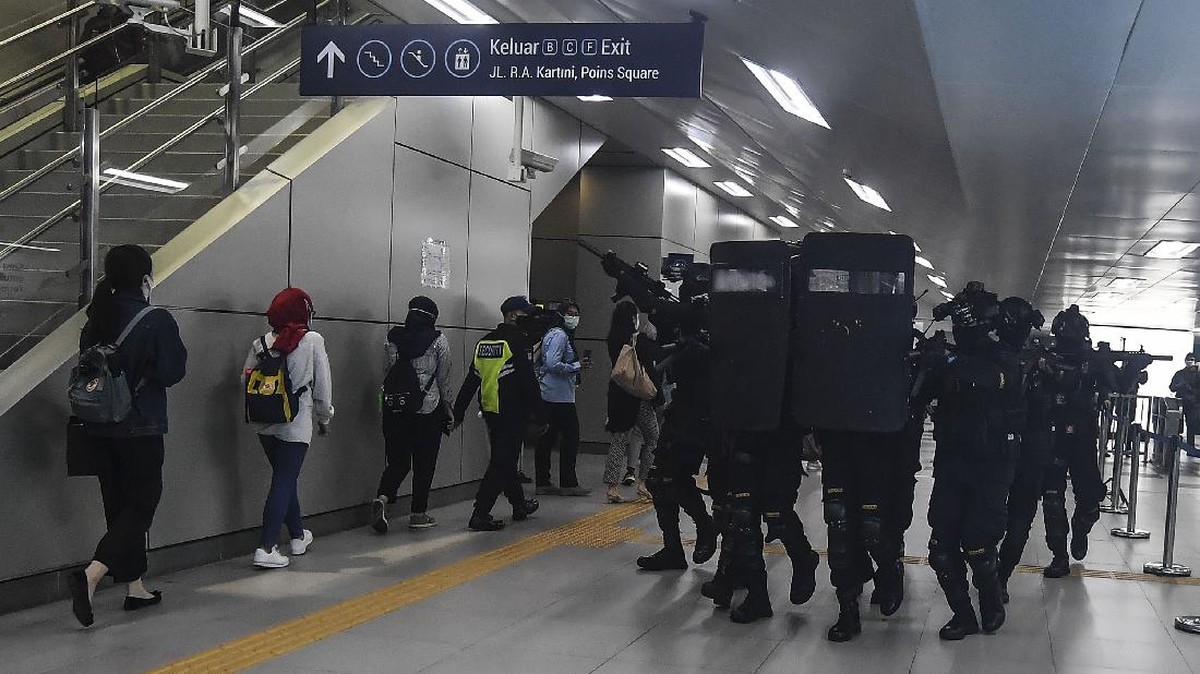 FOTO: Simulasi Polisi Sergap Teroris di MRT Lebak Bulus