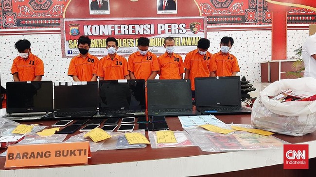 Kapolres Belawan, AKBP Faisal Rahmat Husein Simatupang mengatakan para tersangka yakni otak pelaku RVP (23) warga Rokan Hulu; NS (23) warga Rokan Hulu Riau; IR (25) warga Medan Marelan, AH warga Simalungun, AR (22) dan MSH (29) warga Deliserdang.