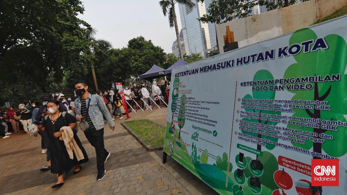 Hutan Kota Gelora Bung Karno (GBK) yang sempat ditutup imbas PPKM, kini telah dibuka kembali. Warga bisa menikmati asrinya hutan kota tersebut.