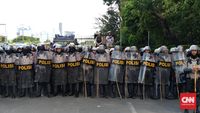 Pantauan CNNIndonesia.com, sekitar pukul 09.30 WIB, barikade polisi sudah berjaga di sekitar depan Gedung Sapta Pesona di bawah Jembatan Penyeberangan Orang (JPO).