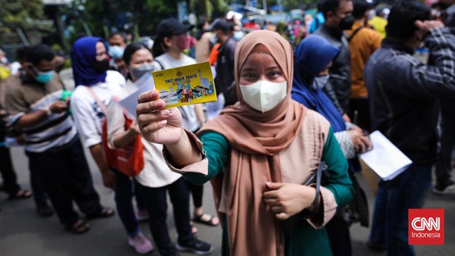 FOTO: Warga Mengantre Daftar Program Mudik Gratis Polda Metro