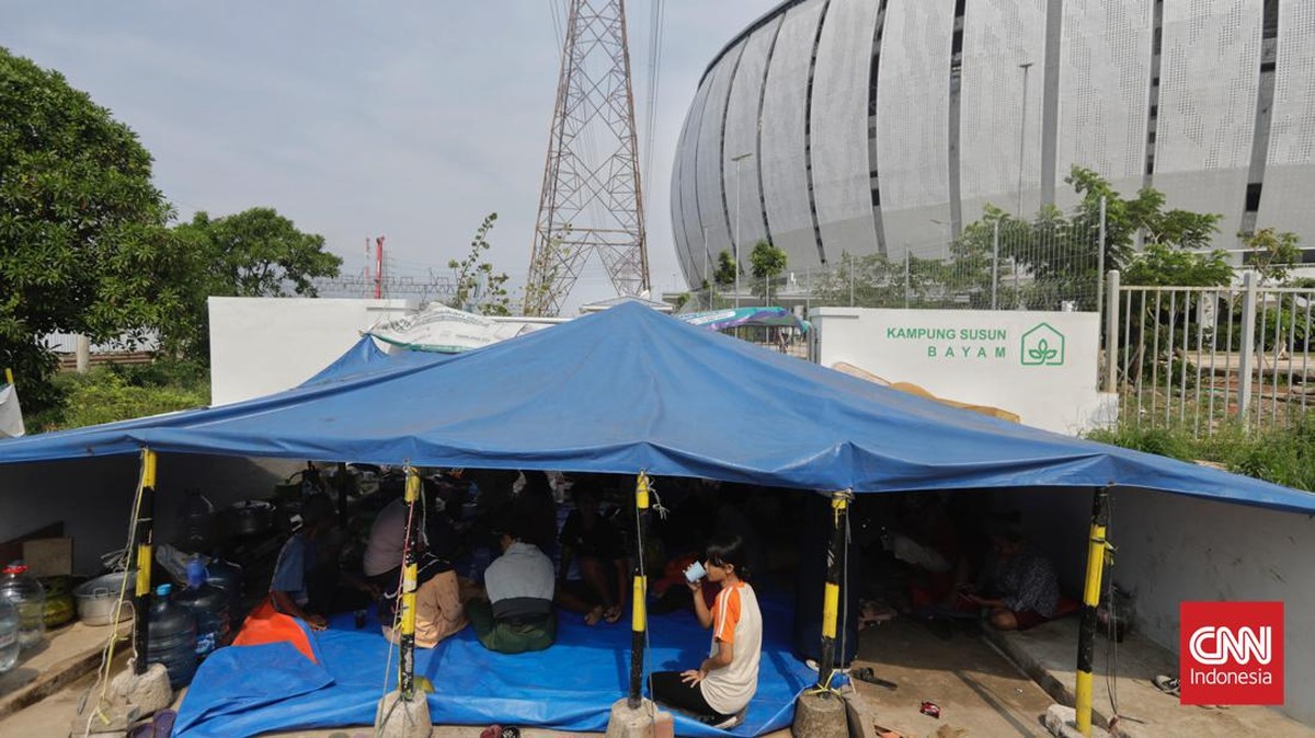 Warga gusuran proyek JIS tinggal di tenda pengungsian selama sepekan terakhir sambil menunggu kepastian waktu penyerahan kunci hunian di Kampung Susun Bayam.