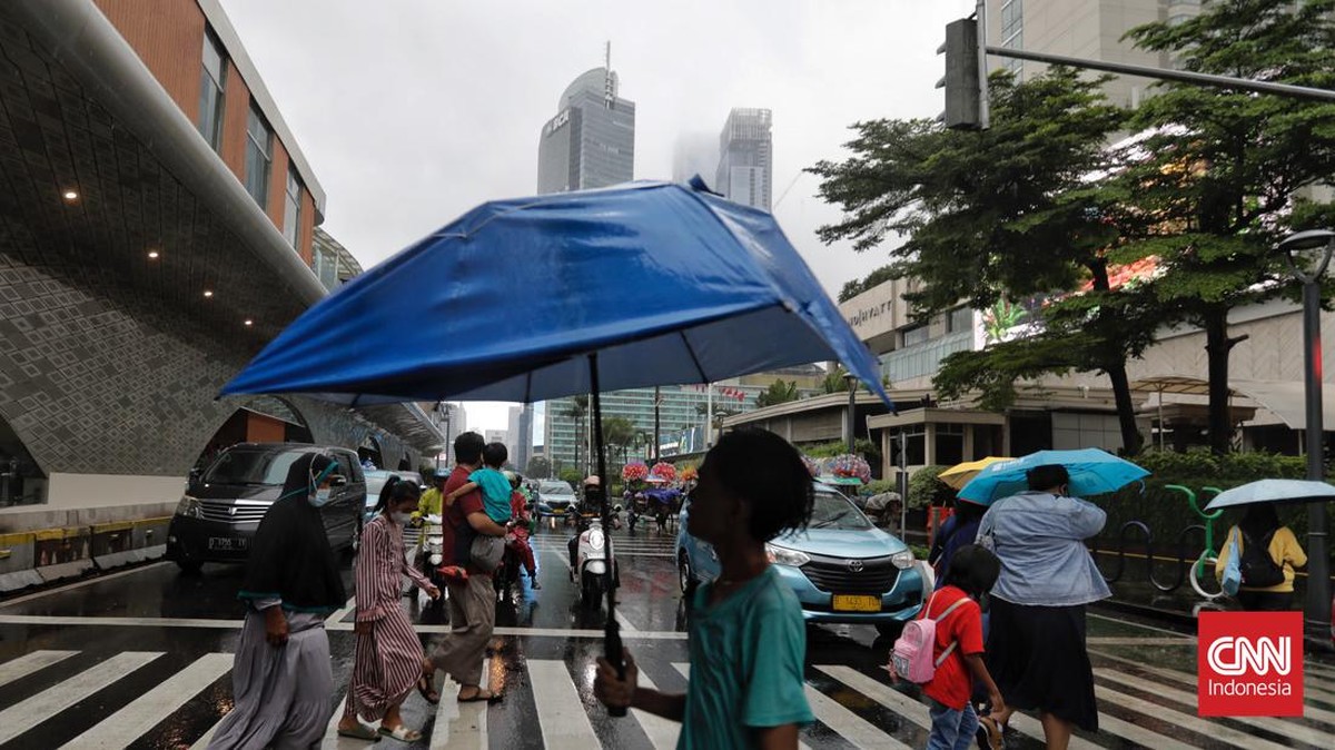 Jakarta, CNN Indonesia -- Warga Jakarta masih beraktivitas meski hujan dan angin kencang terjadi sejumlah wilayah di ibu kota.