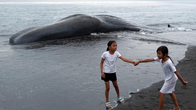FOTO: Paus Sperma Terdampar di Bali Jadi Tontonan Warga