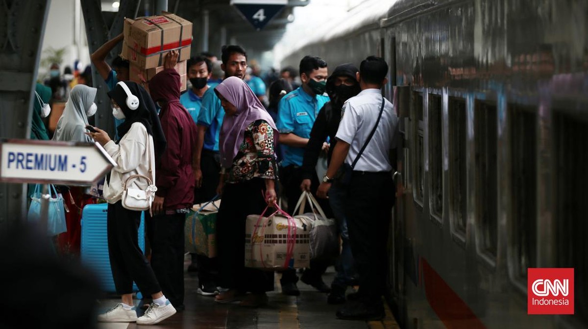 FOTO: 17 Ribu Pemudik Tiba di Stasiun Senen