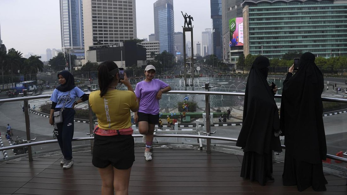 FOTO: Car Free Day Ditiadakan, Warga Tetap Datang ke Bundaran HI