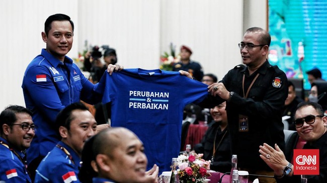 Ketua Umum Partai Demokrat Agus Harimurti Yudhoyono alias AHY memimpin langsung pendaftaran bakal calon legislatif (bacaleg) untuk Pemilu 2024 di KPU.