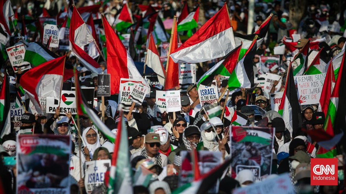 FOTO: Massa Aksi Bela Palestina 'Geruduk' Kedubes AS di Jakarta
