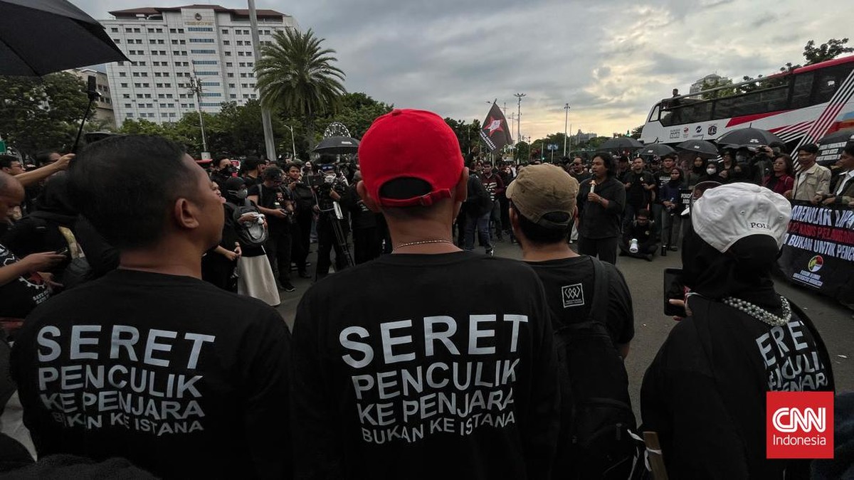 Jakarta, CNN Indonesia -- Sejumlah warga dan pegiat HAM menggelar Aksi Kamisan di depan Istana Kepresidenan Jakarta, Kamis (1/2).