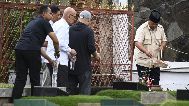 FOTO: Prabowo Disambut Warga saat Ziarah ke TPU Karet Bivak