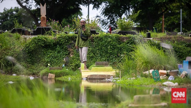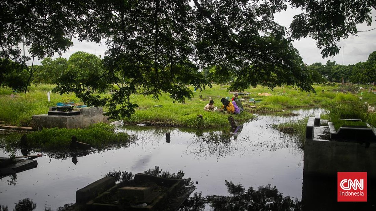 FOTO: Ziarah Makam di TPU Semper yang Terendam Banjir