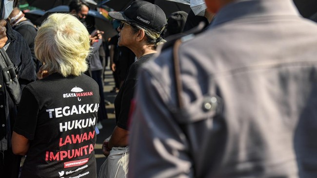 -- Aksi Kamisan pada Kamis (22/8) sore bergemuruh. Massa yang terdiri dari aktivis, akademisi, mahasiswa, hingga pegiat HAM hadir di depan Istana Kepresidenan.