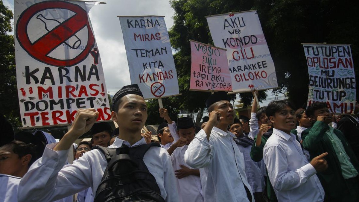 Ribuan santri dari berbagai pondok pesantren (ponpes) menggeruduk Mapolda DIY, menuntut kasus penusukan di Brontokusuman, Mergangsan, Yogyakarta diusut tuntas.
