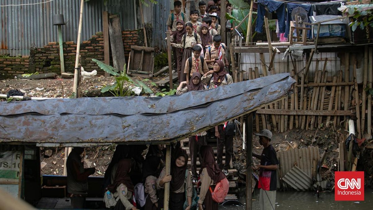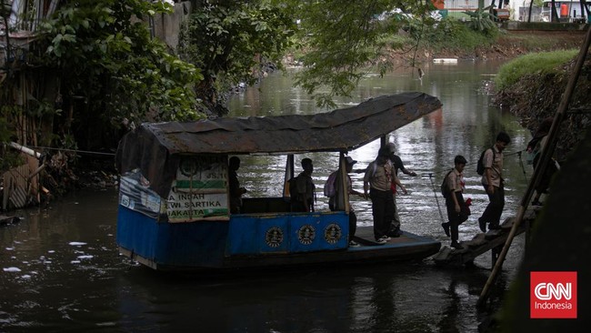 FOTO: Perahu Eretan Jadi Tumpuan Anak Sekolah di Pesanggrahan Jakarta