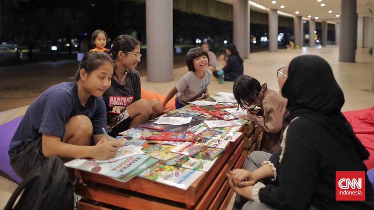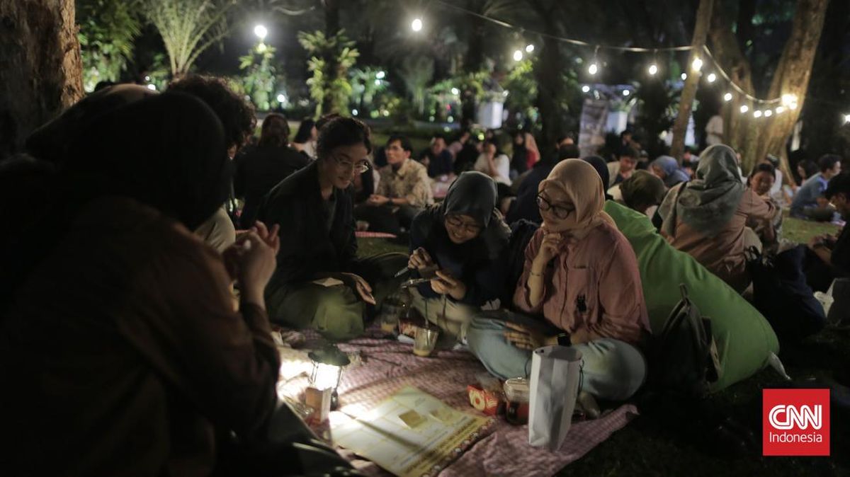 Mereka berkumpul setelah Gubernur DKI Jakarta Pramono Anung Wibowo meresmikan operasionalisasi lima taman di Jakarta menjadi 24 jam. (CNN Indonesia/Adhi Wicaksono)