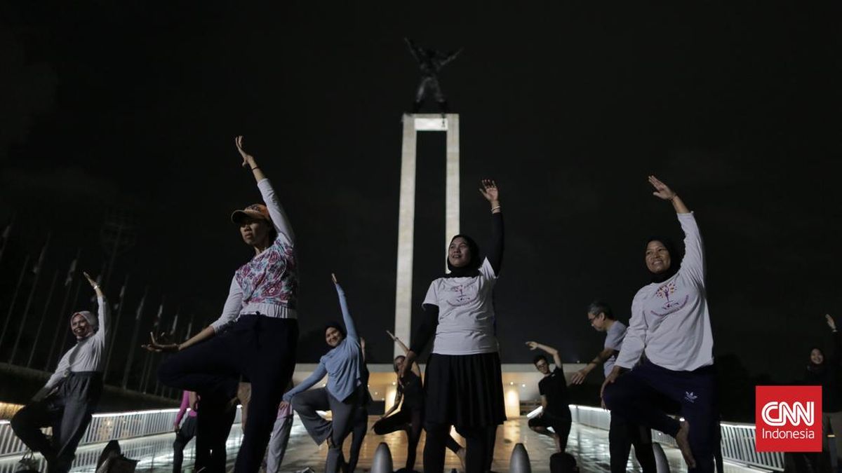Sejumlah komunitas warga melakukan kegiatan pada malam hari saat Lapangan Banteng dibuka 24 jam. (CNN Indonesia/Adhi Wicaksono)