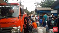 Pantauan di lokasi menunjukkan warga terpaksa mengantre untuk bisa mendapatkan air bersih dari mobil tangki yang disediakan dengan menggunakan ember hingga galon.