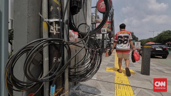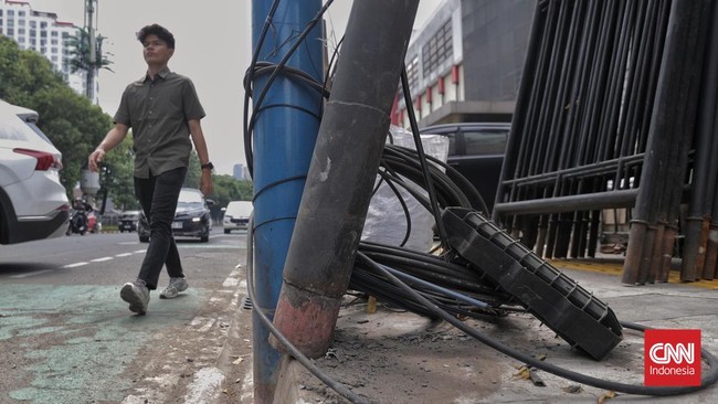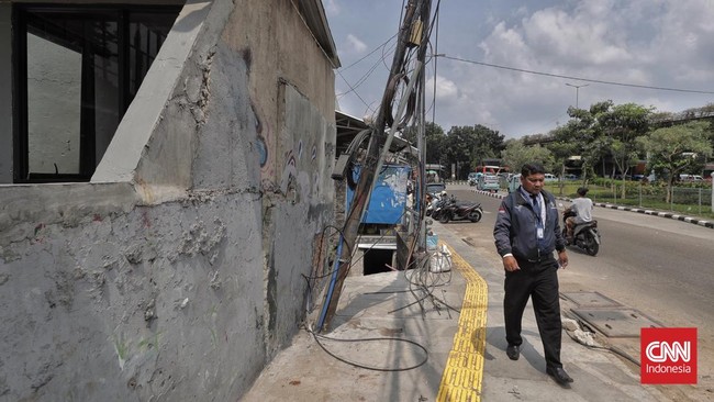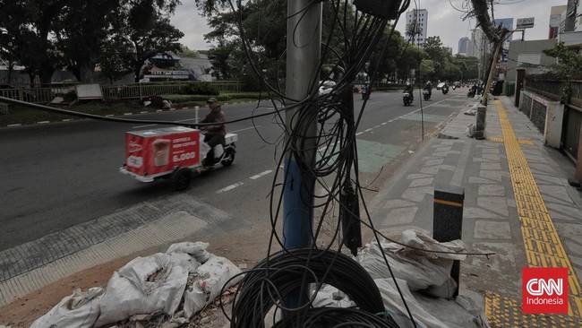 FOTO: Tiang-tiang Miring dan Kabel Semrawut di Tebet
