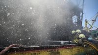 Saat evakuasi mitan berlangsung di tengah laut, tiba-tiba terjadi kemunculan api dari mesin alkom yang sementara dipakai untuk evakuasi. Kapal pun akhirnya terbakar.