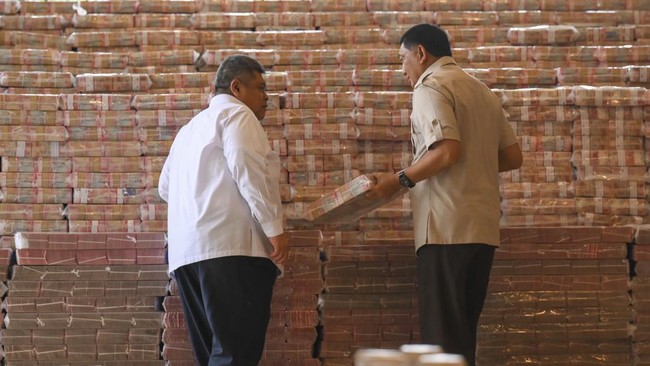 FOTO: Tumpukan Uang Saat Kejagung Serahkan Uang Korupsi CPO Rp13,2 T