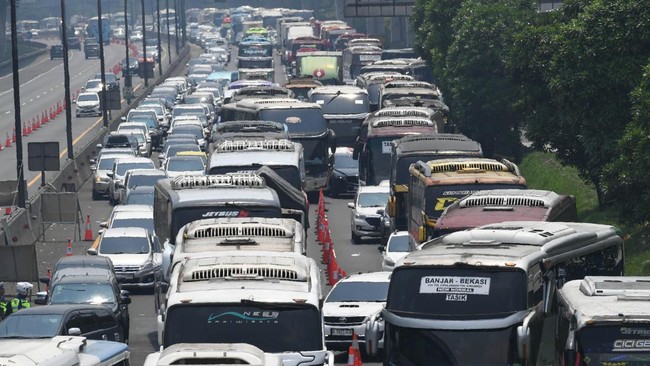 FOTO: Kemacetan Mengular di Tol Jakarta-Cikampek