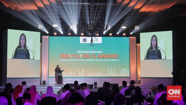 Gubernur DKI Jakarta Pramono Anung menganugerahkan Benyamin S Award untuk tiga kelurahan di Jakarta kategori nyaman, indah dan sejahtera.