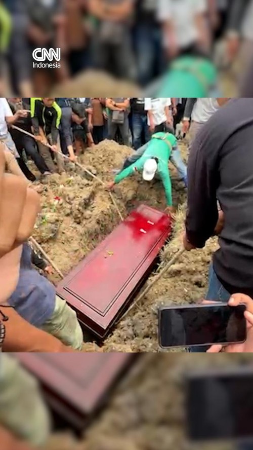 Pemakaman berlangsung di TPU Putat Gede, Surabaya pada Sabtu (9/11) siang diiringi tangis keluarga dan kerabat.