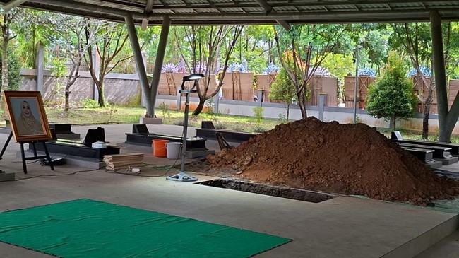 -- Jenazah akan dikebumikan di makam keluarga Astana Ukir Sena Raga, Kelurahan Delingan, Kabupaten Karanganyar, Jawa Tengah.