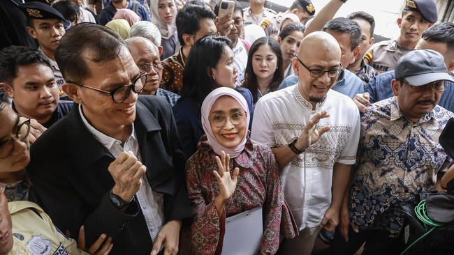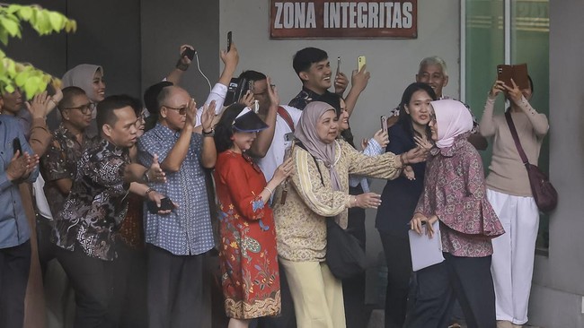 Penampakan mantan Direktur Utama PT ASDP Ira Puspadewi keluar dari tahanan usai mendapat rehabilitasi dari Presiden Prabowo Subianto.