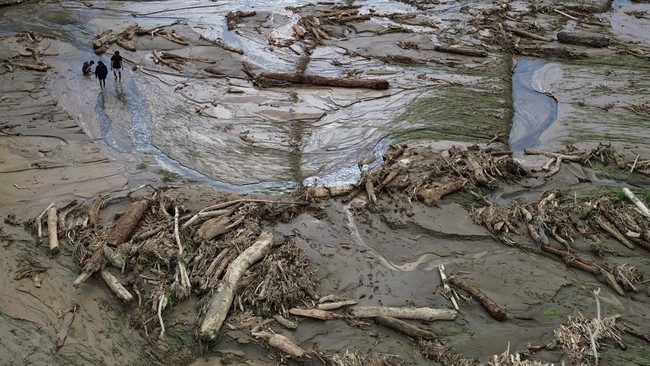 FOTO: Teka-teki Jejak Ribuan Kayu Gelondongan di Banjir Bandang Solok