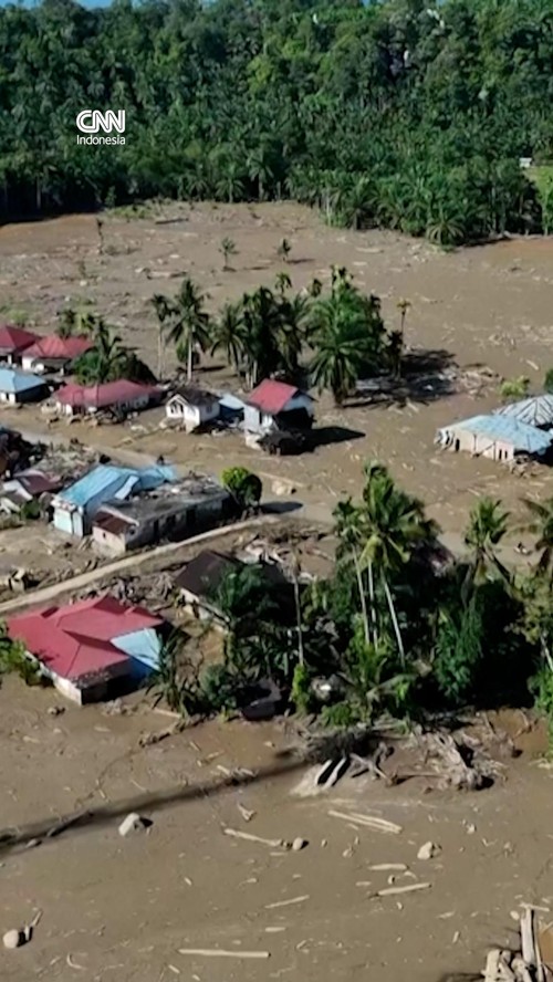 Rekaman drone menunjukkan situasi kerusakan di Tapanuli, Sumatra Utara akibat banjir dan tanah longsor.