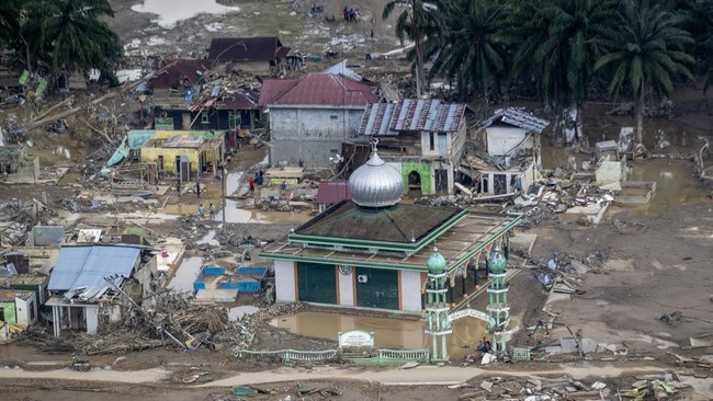 Sejumlah bangunan rusak pascabanjir bandang di Aceh Tamiang, Aceh 1.452.185 jiwa terdampak bencana yang melanda 3.310 desa di 18 kabupaten/kota di Provinsi Aceh