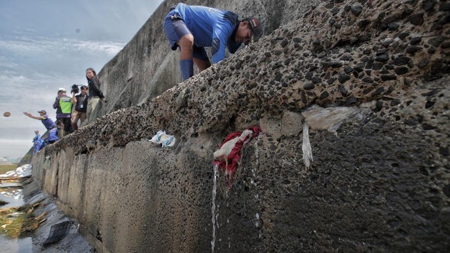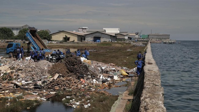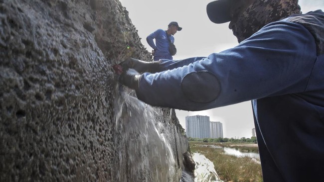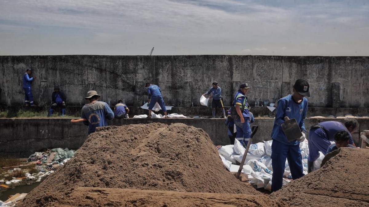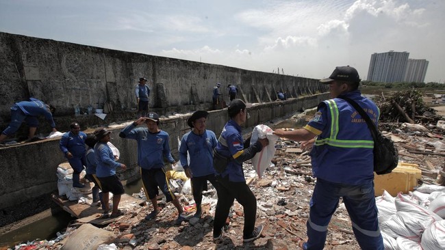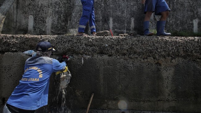 FOTO: Perbaikan Tanggul Muara Baru di Jakarta Utara yang Bocor