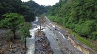 Pantauan detikcom, air Sungai Batang berwarna kecokelatan mengalir dengan deras. Bebatuan yang tadinya nampak di permukaan kini tenggelam bersama tingginya air.