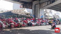 Biasanya mulai dari bundaran Taman Tekno serta depan UPTD Cipeucang berjejer truk angkutan sampah menunggu antrean masuk.